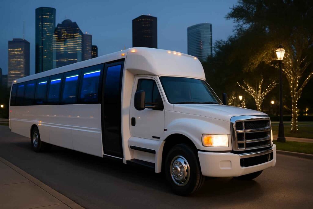 Booking a white party bus with driver Houston ensures each group benefits from expert navigation and guest safety. The fleet accommodates a range of capacities, from small birthday parties to large gala events.